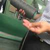 Neben der grossen Stickmaschine läuft grad noch die "Pass-Tuft"-Maschine, auf welcher die Modellana-Teppiche hergestellt werden. Im Tuftverfahren werden jeweils ca. 40 cm Bahnen aneinander produziert, deren Anzahl, Länge und Breite logischerweise vom Endmass bestimmt werden. Dieses Verfahren ermöglicht genaue Herstellung nach Raumgrössen und vermeidet somit kostspieligen Teppichüberschuss. Teppiche werden heute aber nicht nur in Grossflächen verlegt, besonders die Transportindustrie benötigt speziell zugeschnittene Stücke. Hierfür sehen wir die hochmoderne Zuschneidemaschine.